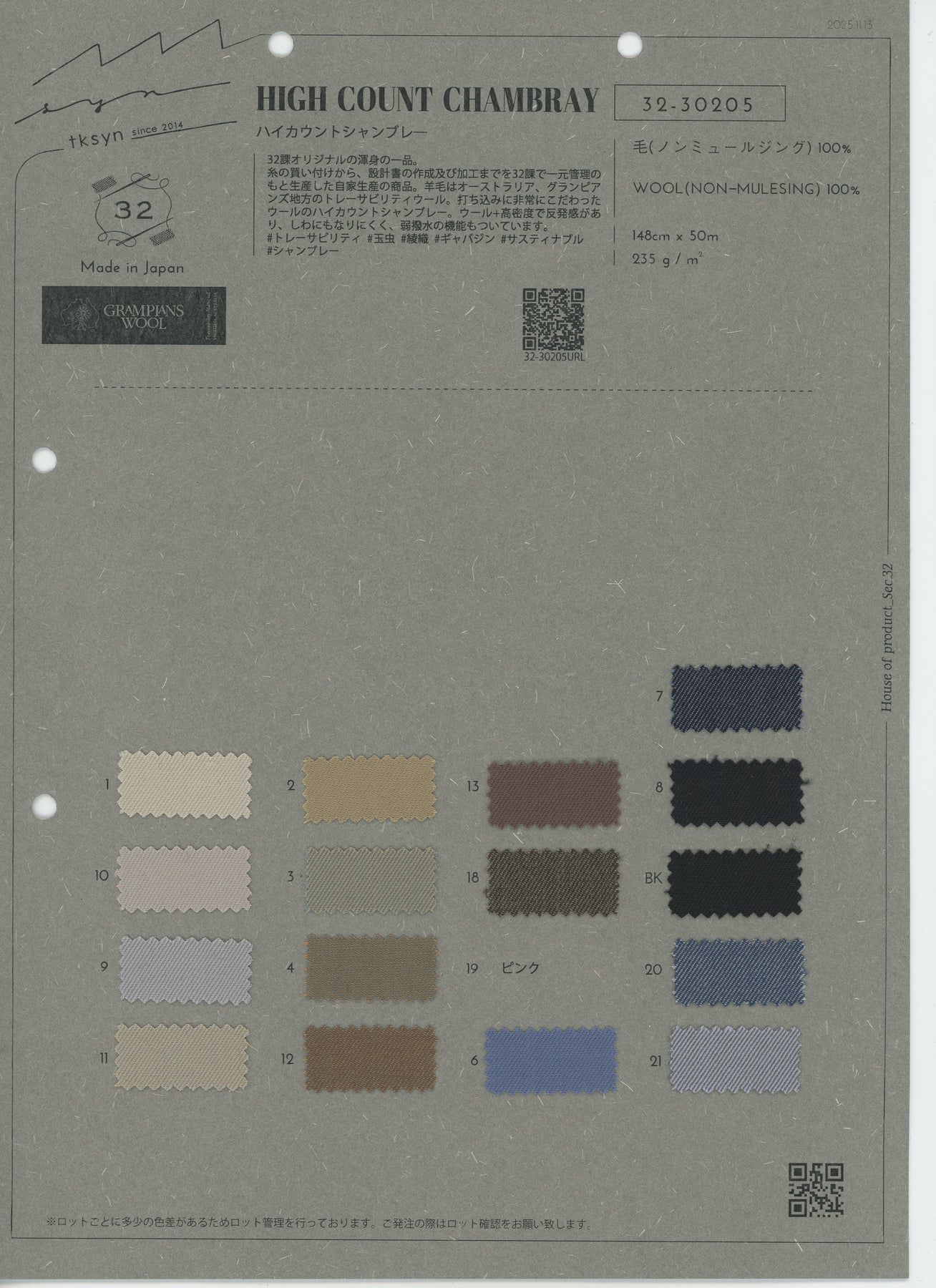 32-30205_HIGH COUNT CHAMBRAY, SLIGHTLY WATER REPELLENT