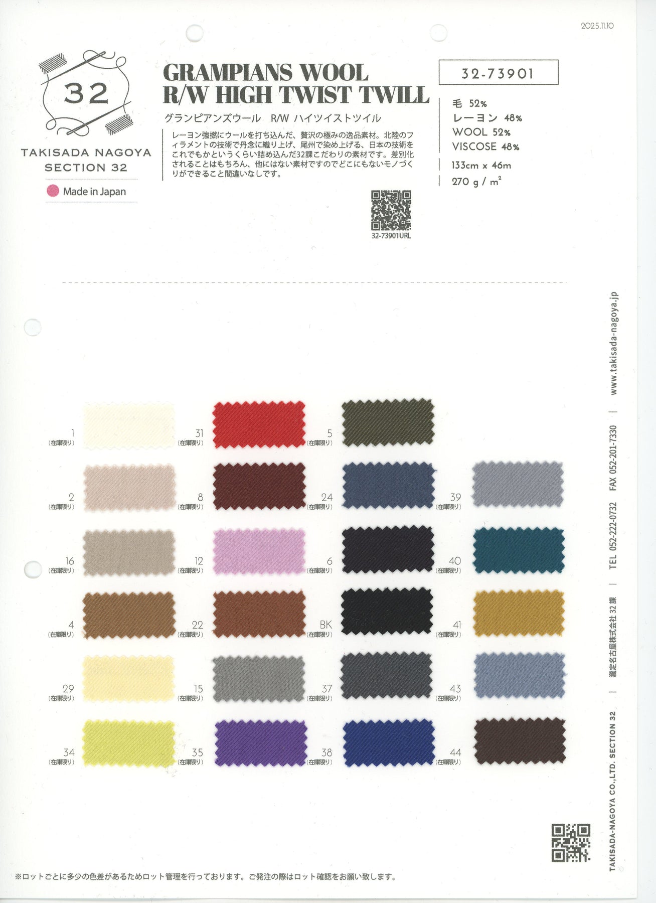 Composition : VISCOSE 48 WOOL 52