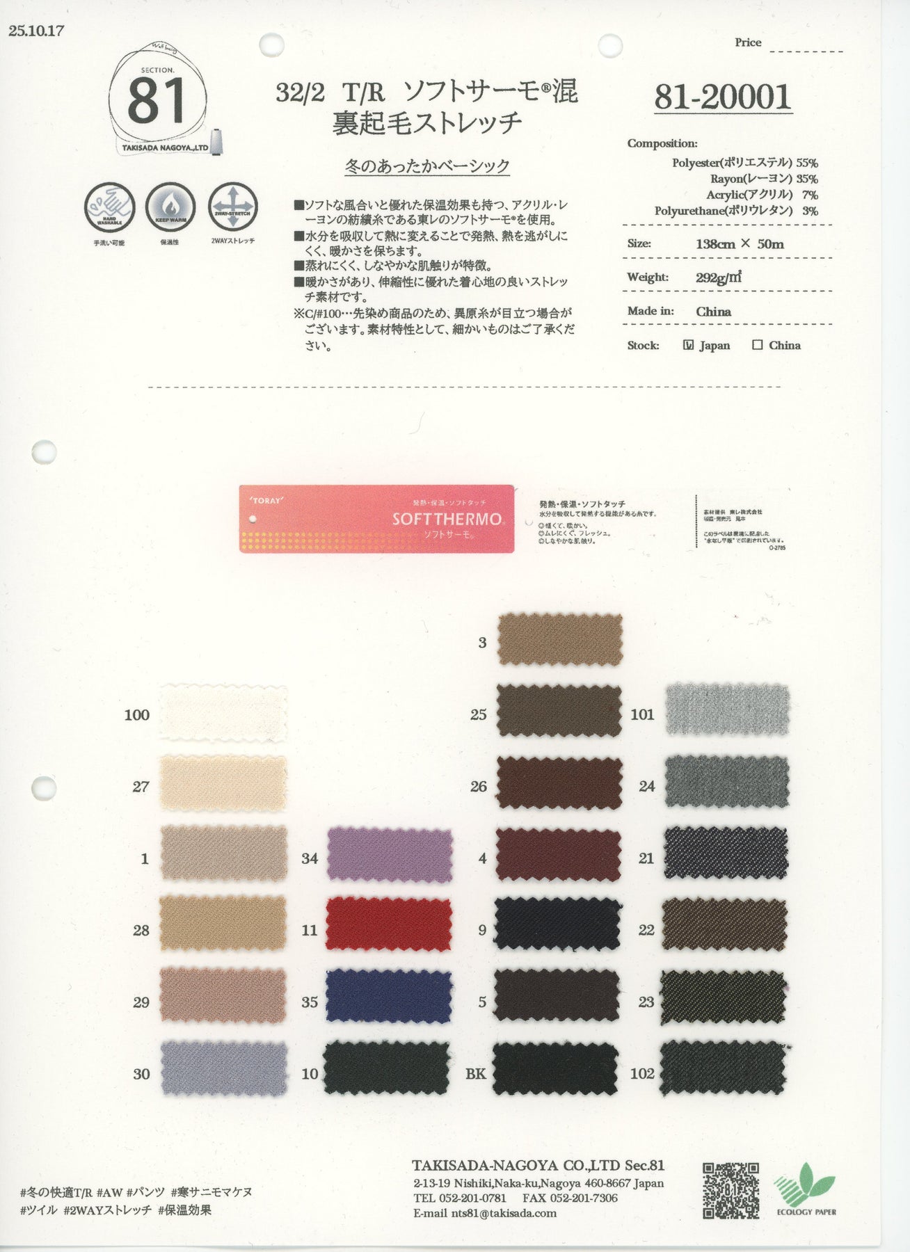 81-20001_32/2 T/R TEMPRETURE CONTROL BLEND BRUSHED STRETCH